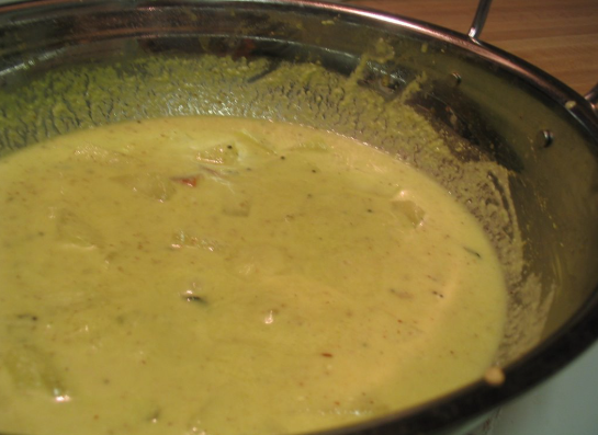 - バターミルクを加える:沸騰したらバターミルクを加え、すぐに火を止めます。ここがポイント!沸騰させすぎると分離してしまうので、注意深く。