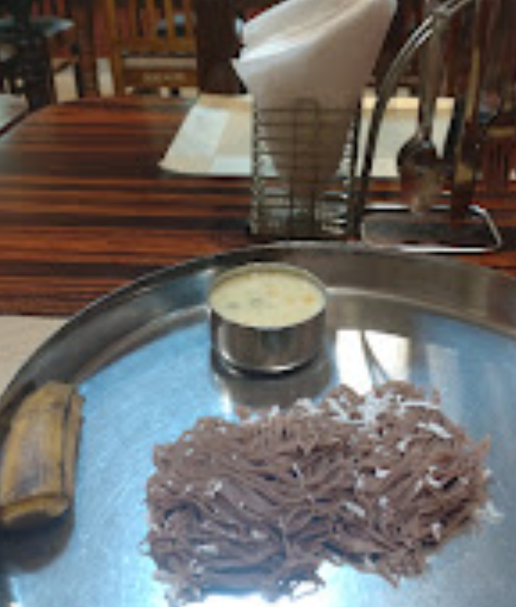 まず出会ったのが、イディヤッパムでした。見た目は素麺のような細い麺状のもので、米粉を練って蒸し器で蒸し上げたものです。ふわふわと柔らかく、ほんのり甘いココナッツの風味が効いています。朝食として、野菜のカレーやココナッツミルクと一緒にいただきました。